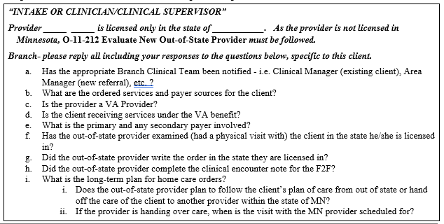 - If the Medical Records Specialist discovers or is notified that the provider may be an out-of-state provider (not licensed in Minnesota), they will follow this process.