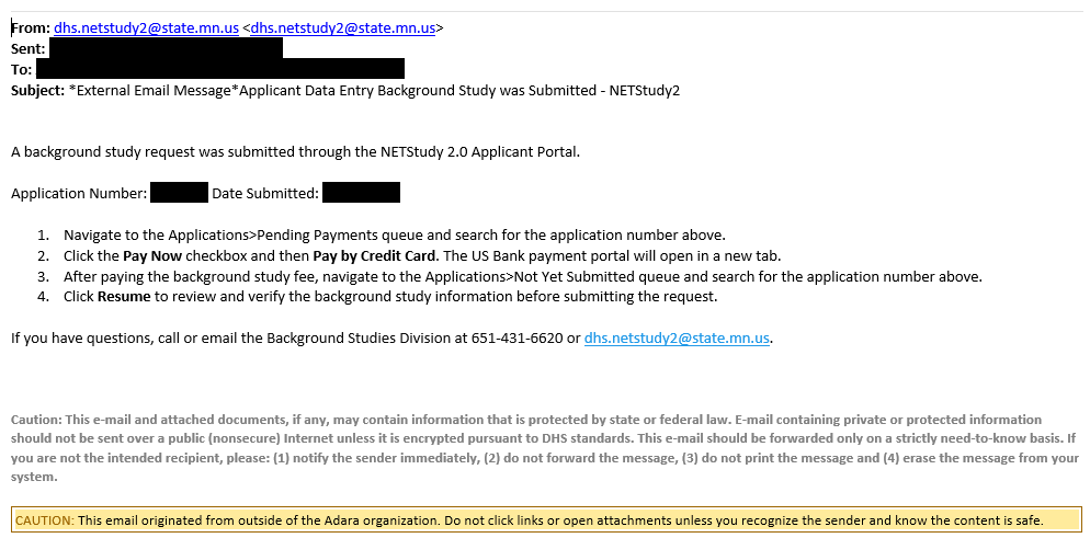 After the candidate has submitted their information via the NETStudy 2.0 Applicant Portal, employees on the email list for NETStudy 2.0 will receive a notification email.