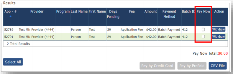 Select the study you are going to pay for by checking the box in the Pay Now column.