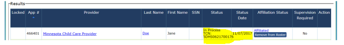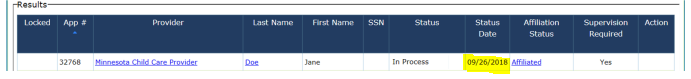 - Status - In Process: A status of In Process means the application has been submitted but the candidate has not yet been fingerprinted. The date in the Status Date column is the date on which the application was submitted.