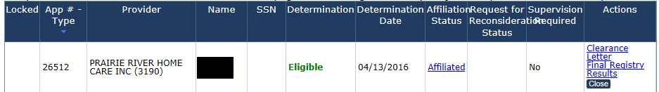 If the candidate chooses to pursue reconsideration and the Adara Home Health chooses to remain affiliated with the candidate during their request for reconsideration: Do not remove the candidate from the Roster. By remaining affiliated to the candidate, the employer will have access to the status of the request for reconsideration in the Determination Available queue.