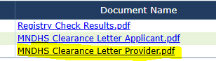 Click the hyperlink for the document titled “MNDHS Clearance Letter Provider.pdf”.