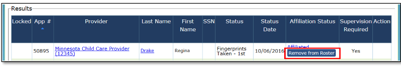 If the candidate chooses to pursue reconsideration and Adara Home Health chooses NOT to have the candidate remain affiliated with our program during their request for reconsideration: Remove the study subject from Adara roster by clicking Remove from Roster under the Affiliation Status column.
